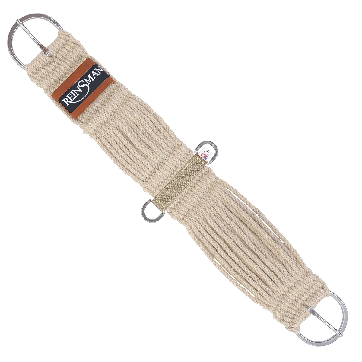 This 27-strand mohair cinch is double woven for ropers. Our mohair blend has a wrapped nylon center and leather reinforced bars for stability when you need it. Natural Mohair Blend cord is strong and durable while giving your horse needing breathing room for hard work. 3” stainless steel buckles and 1” stainless steel dees are easy to care for, so you can focus on your ride.